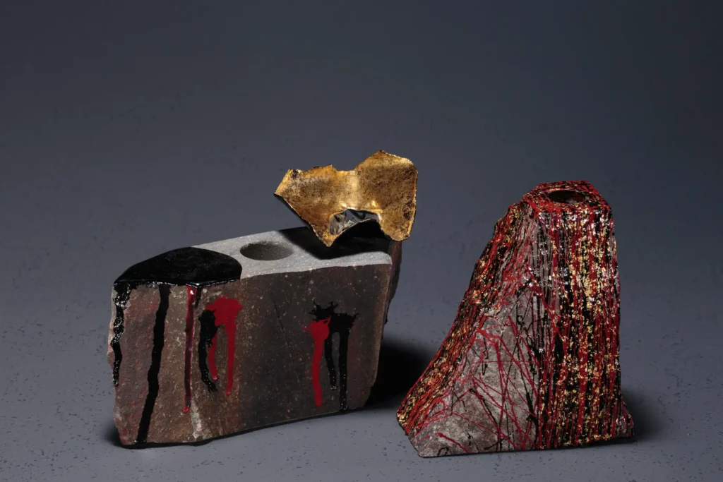 箱根火山の溶岩が生んだ希少石材「本小松石」を、石匠・華道家・漆芸作家が現代アートとして再構成。入場無料・予約不要