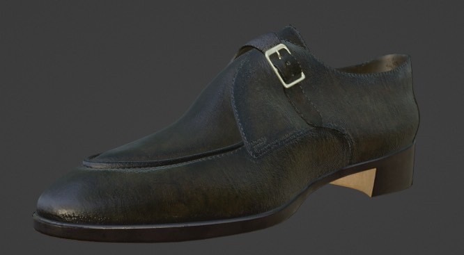 この一足を3DGSで高精細に3Dスキャンし、デジタルデータとして保存。ビスポークシューズの造形そのものを、編集可能な3Dアセットとして取り込みました。
